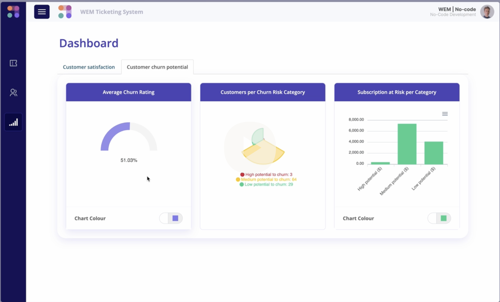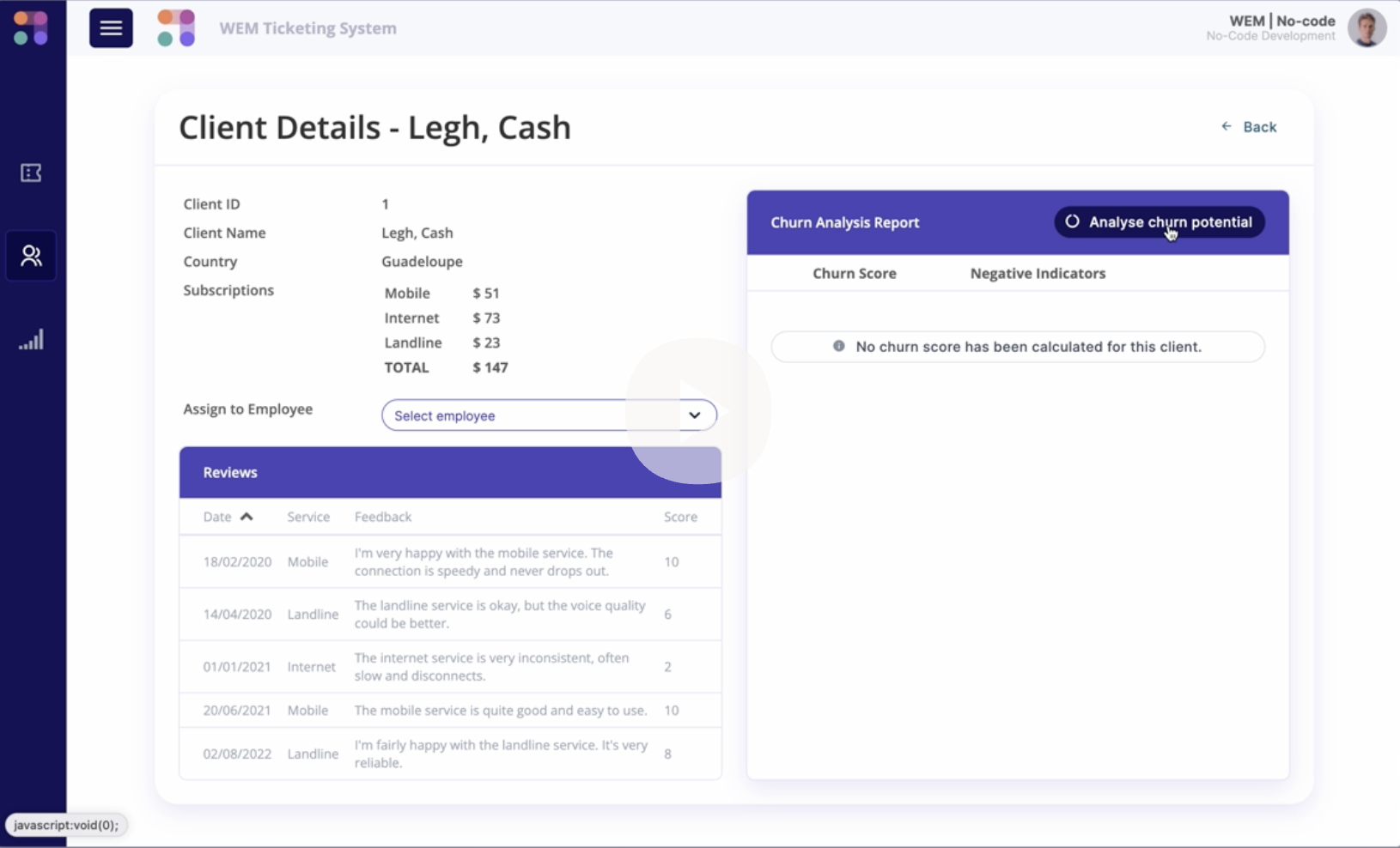 Platforms like ChatGPT have triggered our imagination. WEM allows you to create AI driven applications, APIs and processes which are much more advanced than chat. Customer retention, risk reduction, intelligent data analysis, customer spend prediction, sales team training tools and others. No code involved.